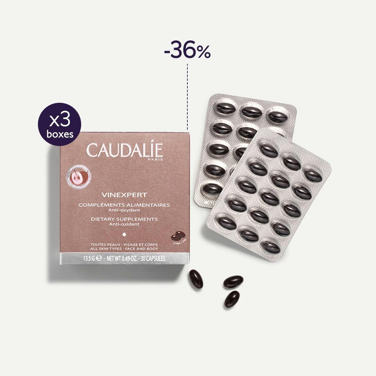 CAUDALIE 研發出100%天然純素的美肌膠囊,是市面上唯一加入白藜蘆醇及葡萄籽多酚、兼具抗氧化及抗皺功效的美顏補充品,有效減少人體 48% 的自由基,預防80%皺紋形成,從內而外為肌膚帶來全面高效抗氧屏障。